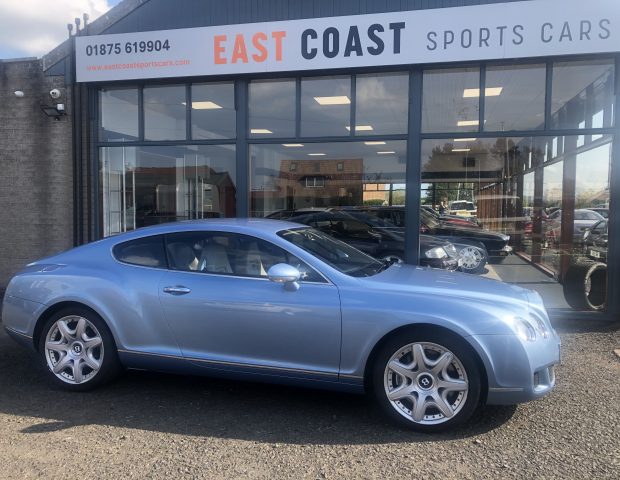 East Coast Sports Cars are delighted to present this beautiful 2008 Bentley Continental GT, 2 previous owners & full Bentley Glasgow service history. Finished in Silverlake blue with Portland cream leather, Dark Stained Burr Walnut, 4 Spoke dual toned steering wheel, drilled alloy sports foot pedals, sports gear lever, keyless entry and start/stop button, heated front seats , electric front seats with 14 way adjustment. The car also boasts the Mulliner Driving spec which costed an additional £5.3K when purchased new. The GT will be fully serviced & MOT, recently had new brake discs and pads all round as well as a set of Pirelli Tyres. It will also come with 6 months Warranty & 6 months Roadside Assistance for your piece on mind and will be Professionally valeted at point of collection.Finance Available. For more information or a test drive please call 01875 619904